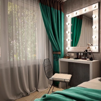 - Taille de la chambre. Non seulement la taille de ce meuble dépend de la taille de votre pièce, mais aussi de sa forme, du nombre de rangements. Donc, pour une petite chambre, il est préférable de choisir des modèles avec une table étroite, où un miroir est placé sur le mur. De plus, souvent, dans les petites pièces, la coiffeuse est utilisée comme table de chevet, alliant ainsi fonctionnalité.Dans ce cas, transformateur de meubles adapté avec miroir rabattable.