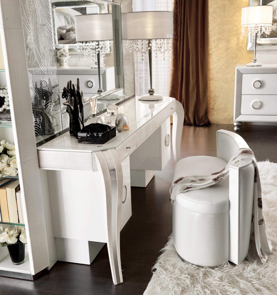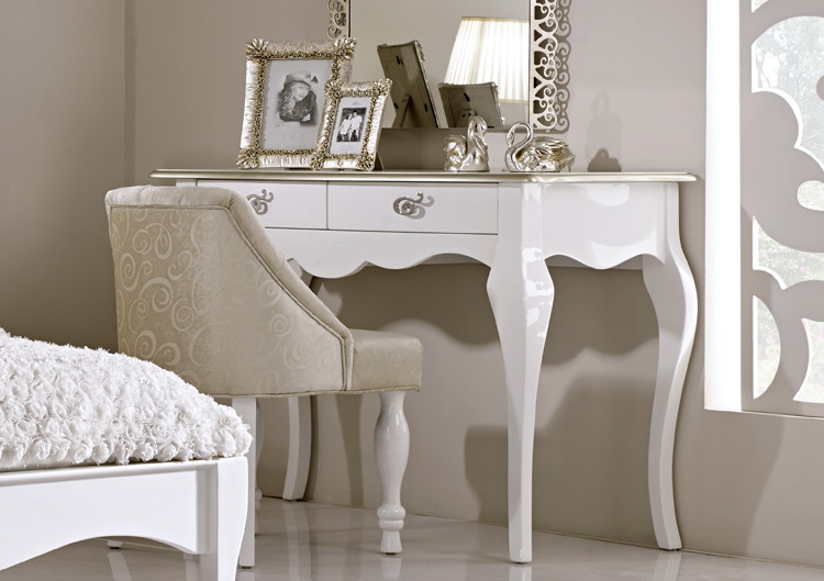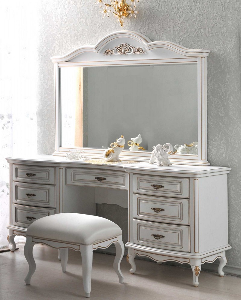 Pour une grande pièce et la taille de la coiffeuse blanche peut être impressionnant. Habituellement, les produits sont équipés d’un grand nombre de boîtes de toutes sortes: boîtes à bijoux intégrées, étagères pour le stockage des crèmes et des parfums et tiroirs pour les bagatelles.
