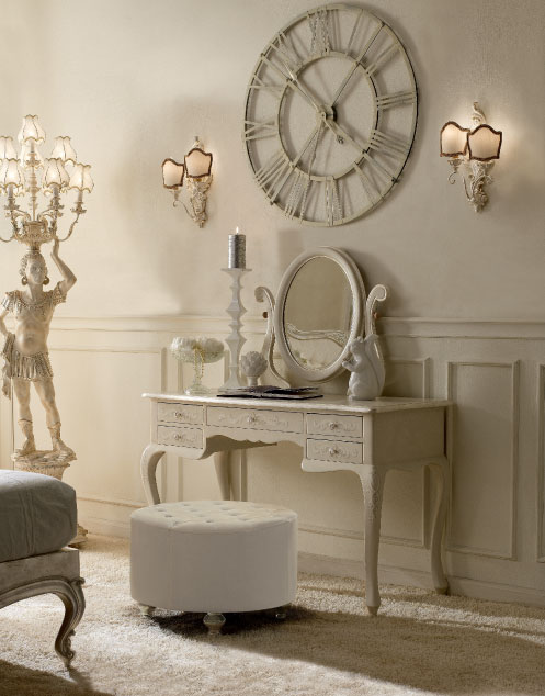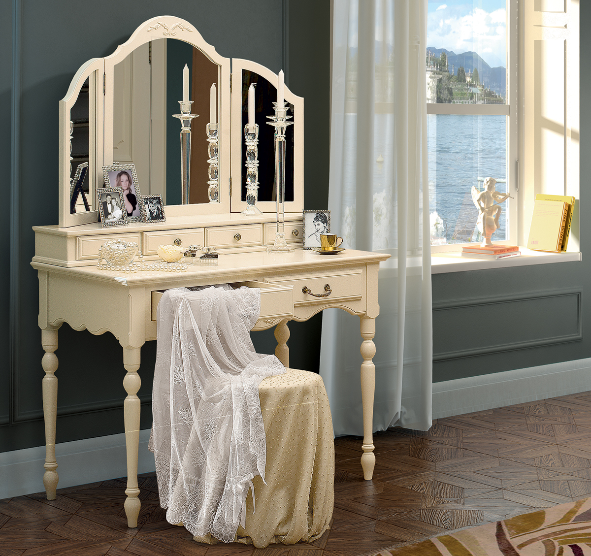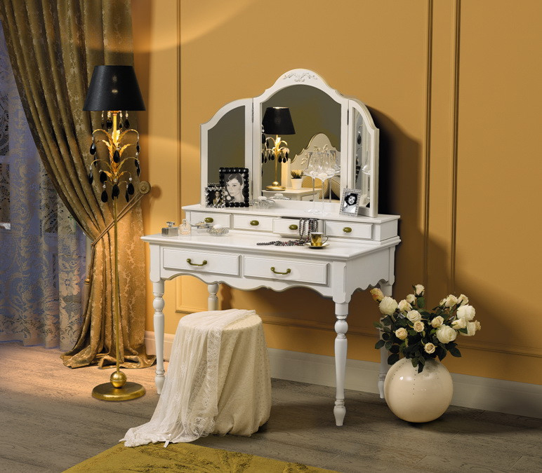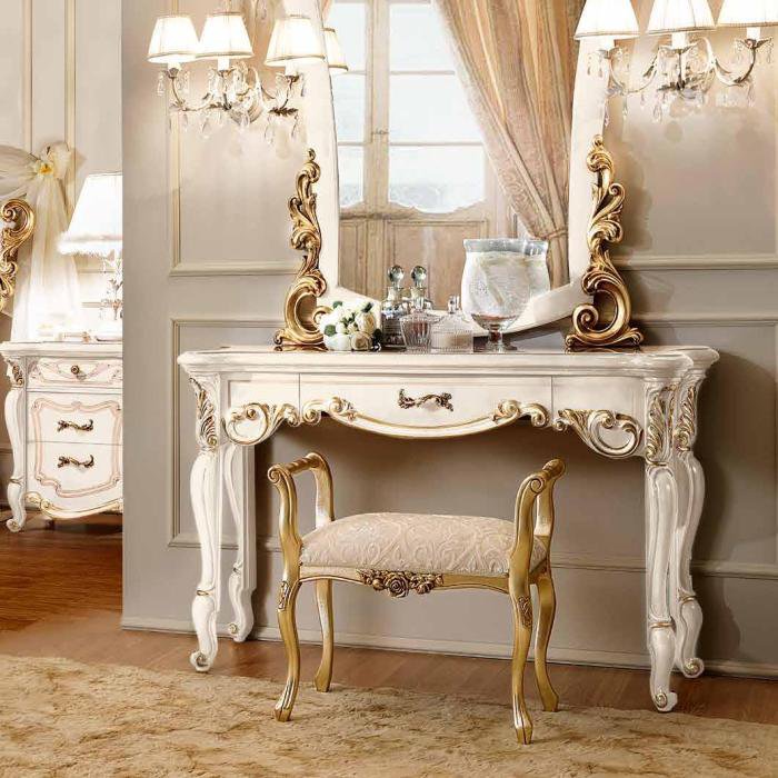 Coiffeuse - attribut de mobilier, destiné à être utilisé dans la chambre ou le dressing. Il tire son nom du fait que, même au Moyen Âge, ce produit était installé dans les chambres à coucher et qu’il servait à placer une carafe d’eau et un lavabo.