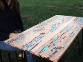 La beauté particulière du mobilier est donnée par des morceaux de bois minables, fanés, corrodés par les scolytes, les larves et les vides formés de temps en temps. En comblant de tels défauts époxydiques naturels, vous pouvez obtenir des effets spéciaux irréalistes.