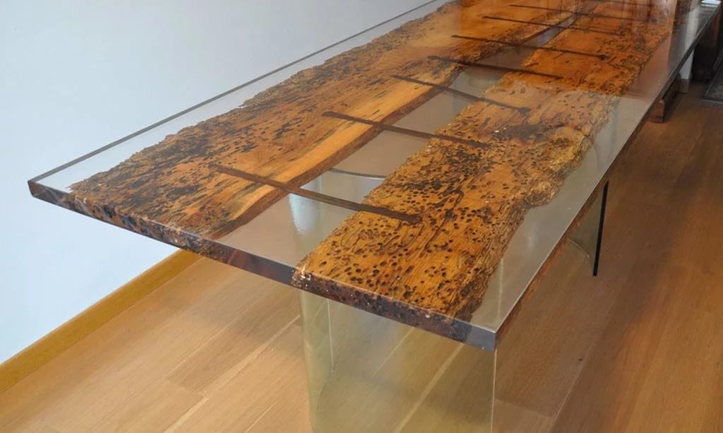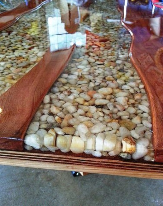 Il existe plusieurs utilisations spectaculaires de la résine époxy dans la décoration de meubles.