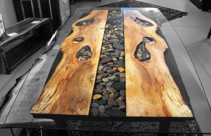 D'accord, la table est faite avec l'utilisation de résine époxy semble assez unique, original et parfois extravagant? En combinant ce matériau avec un arbre, vous pouvez facilement réaliser un meuble unique et inimitable qui peut décorer n'importe quelle pièce.