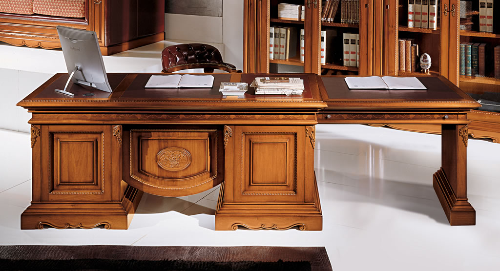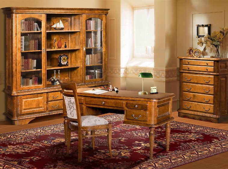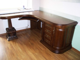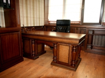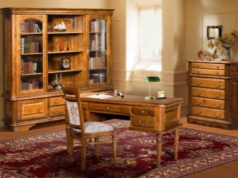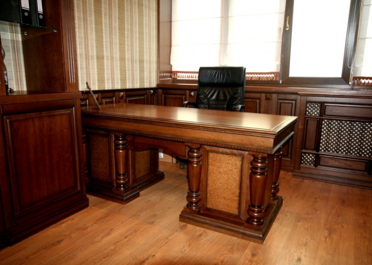 - Les meubles en pin massif auront fière allure dans le bureau. Cela peut être un bureau écrit ou informatique.De tels produits peuvent être à la fois de forme rectangulaire et angulaire. Pour un propriétaire solide, vous pouvez acheter un meuble avec un décor à la mode "antique", fabriqué avec patine, craquelure, éléments sculptés.