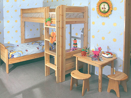 - En raison de son respect de l'environnement, les produits en bois de pin constitueront une excellente option pour les installations pour enfants. Pour éviter les blessures, les meubles pour enfants doivent être soigneusement traités et ne pas présenter de coins coupants.
