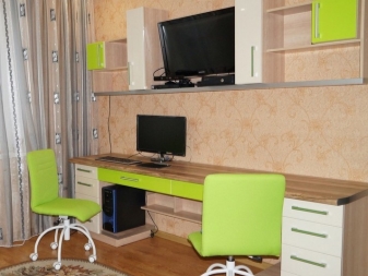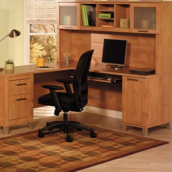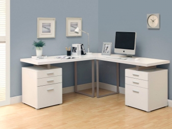 - Modèle d'angle. Ce tableau est préféré car il vous permet d'économiser des mètres carrés. C'est idéal pour les petits espaces. Les variantes de type angulaire incluent souvent la présence d'étagères supérieures, de sections inférieures et latérales et de classeurs pour livres et papiers;