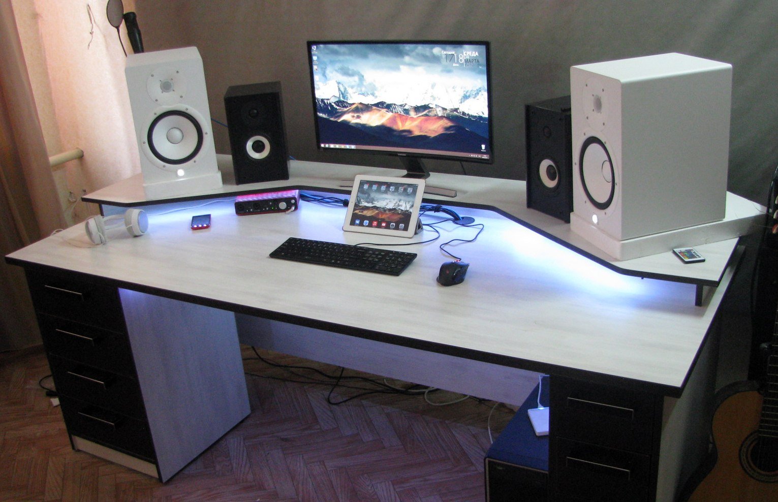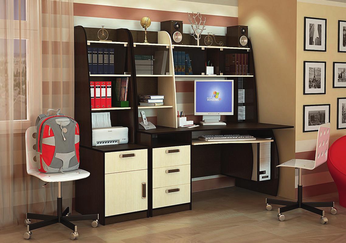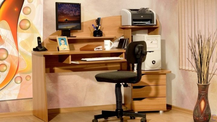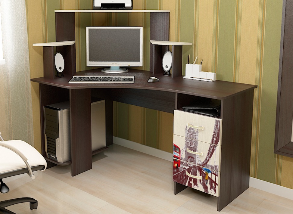 - Étagères. Les étagères sont souvent installées symétriquement, occupant tout l’espace vertical ou asymétriquement s’il s’agit d’un modèle angulaire. Il est important qu'ils soient situés dans la zone de travail. Il est conseillé d'installer une étagère pour l'imprimante, une cellule pour les disques, le scanner et les haut-parleurs.