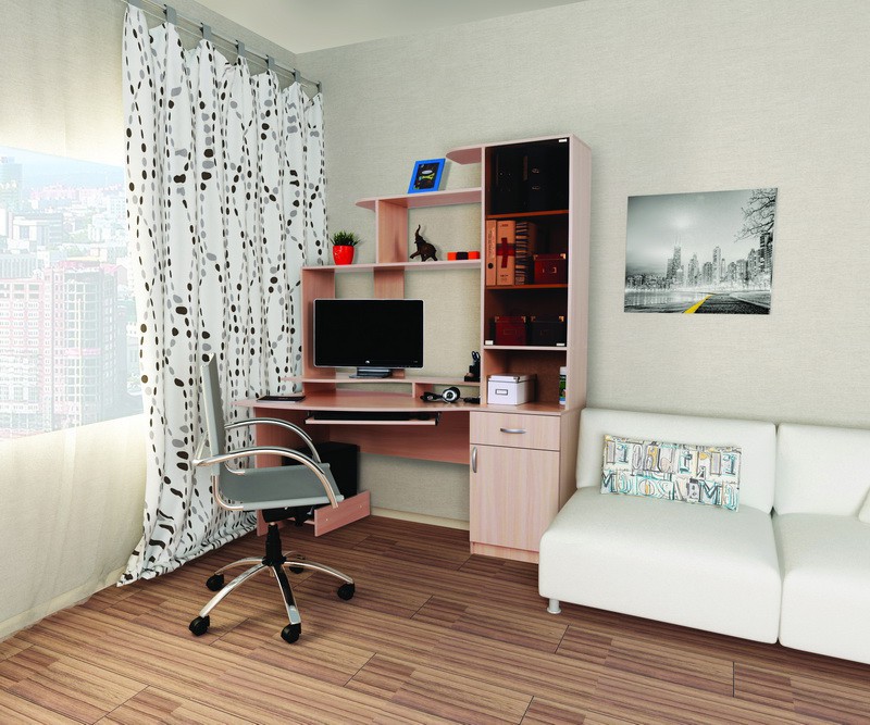 Il est important de prendre en compte que le bureau d'ordinateur est harmonieusement combiné aux autres objets de la pièce, complétant ainsi l'intérieur et le rendant exclusif.