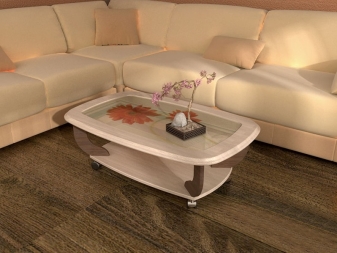 - Apparence. Choisir des meubles sur roues doit être basé sur la direction stylistique de l'intérieur. Les tables en verre ou en métal aux formes strictes sont caractéristiques d'un style high-tech minimaliste, tandis que les classiques, les pays et les lofts incluent le placement d'attributs en bois avec des pieds figurés.