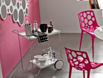 La forme originale des tables sur roues, une variété de matériaux pour leur fabrication et des solutions de couleurs permettent à ces attributs de s’harmoniser harmonieusement dans n’importe quelle pièce intérieure. Dans ce cas, ce ne sont pas les éléments de décoration et les accessoires du produit qui jouent le dernier rôle: les inserts en verre, les pièces chromées et les composants en bois doivent constituer un ensemble unique avec d’autres meubles.