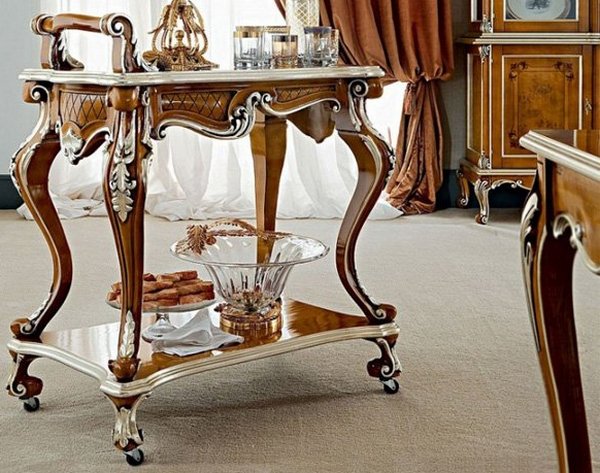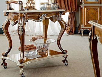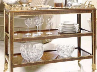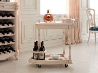Les produits mobiles sur roues ont une grâce particulière: ils servent le petit-déjeuner, le café ou le thé. Ces tables de service ont un but différent: déplacer des plats de la cuisine vers la chambre ou le salon, servant de surface supplémentaire pour différents types de travail.