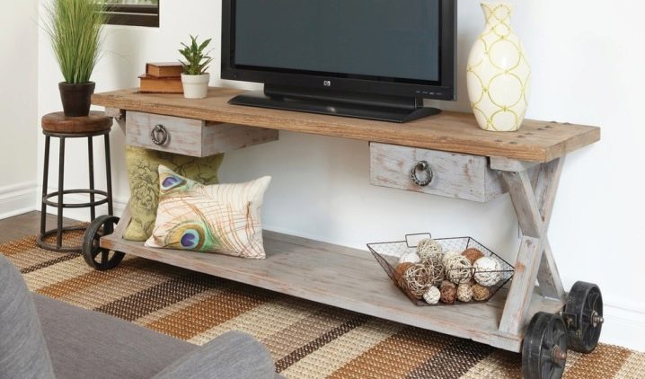 Les attributs en bois sur les roues sont plus durs, il sera donc souvent difficile de les déplacer d'une pièce à une autre. Ces produits conviennent au hall comme support de télévision, peuvent être placés dans la chambre à coucher pour travailler avec un ordinateur portable ou des travaux d'aiguille dans votre chambre.