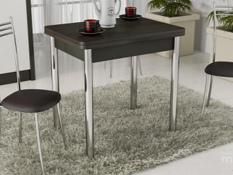 Les pieds en métal peuvent être à la fois classiques droits, remplissant la fonction de supports, et coulissants, pliants et repliables. De tels supports sont le plus souvent utilisés dans la fabrication de modèles de tables à manger. Dans ce cas, utilisez du chrome ou du métal brossé.