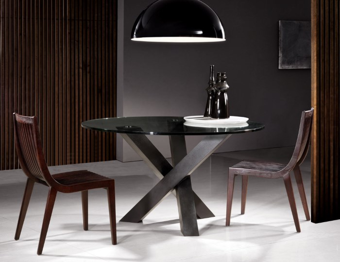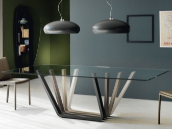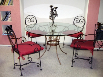 La forge peut comporter un entrelacement de lignes ajourées et les motifs les plus inhabituels, complétés par un verre fragile en forme de table. La surface transparente des tables vous permet de faire attention à ces pieds et de les mettre en évidence dans ce meuble. Les pieds de table forgés le rendent plus stable et lourd. Une telle table sera difficile à déplacer indépendamment, mais en même temps, elle sera stable à sa place.