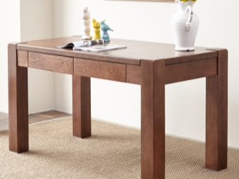 Les accessoires sont également fabriqués à partir de bois massif. Les pieds en chêne sont très populaires car ils se distinguent par leur fiabilité et leur durabilité.Les supports pour les tables sont également en bois. De tels modèles sont parfaits pour décorer un intérieur dans le style de la campagne ou de la Provence.