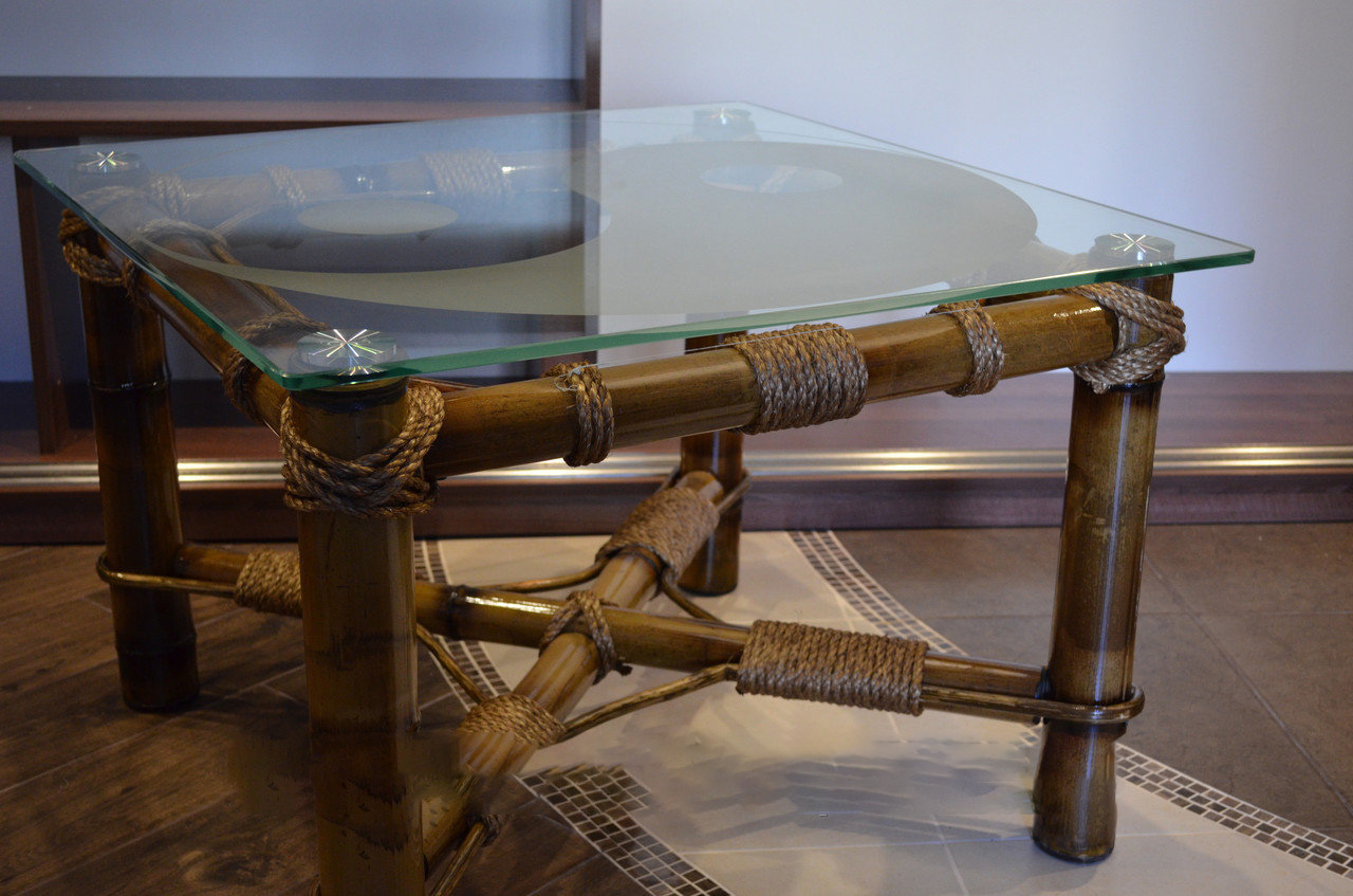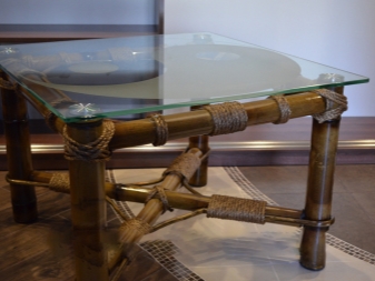 Si vous voulez en quelque sorte diversifier l'intérieur de la pièce, vous pouvez acheter un modèle fabriqué dans le style africain. Telle peut être une table en verre avec des supports en bambou.Les jolis tissus de bambou sont très élégants et remplissent facilement le motif. L'entrelacement se développe dans tous les labyrinthes, il est possible de les admirer pour toujours.