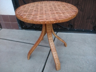 Outre le bambou, d'autres jambes tissées sont également populaires. Ils sont parfaits pour ceux qui veulent équiper une loggia, un chalet ou une maison de campagne. C'est une excellente solution pour la décoration d'intérieur dans un style rustique ou campagnard. Dans ce cas, le tissage est constitué d'une tige ou de tiges minces. Ce sont des supports très flexibles et élégants qui complètent parfaitement les tables en bois ou en verre.