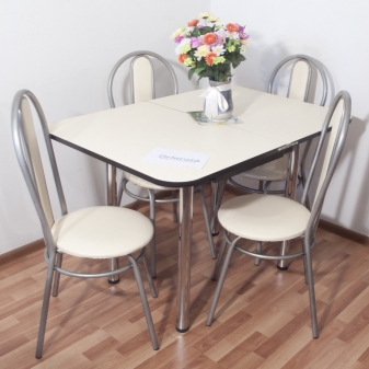 Des tables de qualité coûteuses peuvent également être équipées de supports en acier inoxydable. Ils ne changent pas extérieurement avec le temps et peuvent servir pendant des années et des décennies.