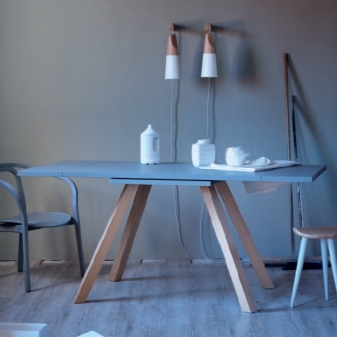 Ces supports sont le plus souvent utilisés pour compléter le mobilier de bureau. Les pieds repliables vous permettent de créer des meubles multifonctionnels et plus pratiques à utiliser. De tels modèles sont indispensables si l’espace où la table sera placée est limité et petit. Ils ont un mécanisme assez simple et pratique, mais en même temps un coût budgétaire.