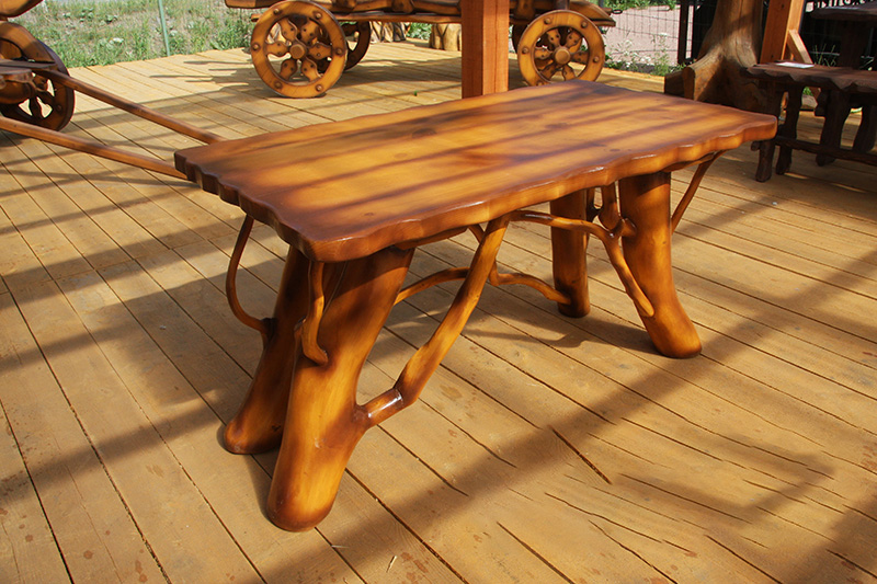 Les poteaux en bois massif complètent parfaitement tous les meubles en bois. Ils vous permettent de souligner le statut social élevé de l'hôte. De tels supports sont assez coûteux et augmentent donc le coût de la table dans son ensemble. Pour éviter cela, les fabricants utilisent souvent une combinaison de supports peu coûteux en bois et en métal.
