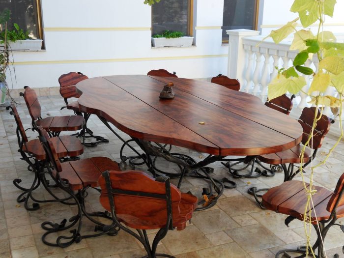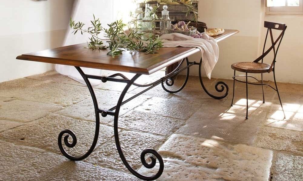 Les conceptions de tables, pour la fabrication desquelles on utilise des pieds forgés, sont très populaires. Plateau en verre parfaitement avec des supports en fer forgé et s'intègre parfaitement dans chaque appartement intérieur ou maison. C’est une combinaison concise qui reste toujours à la mode et pertinente.