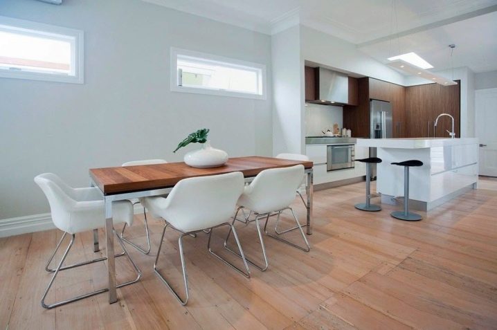 Avec l'aluminium, on utilise souvent du chrome pour la fabrication de telles structures. Il a plus de poids, mais sa résistance est similaire à celle de l'aluminium. Les pieds chromés sont parfaits pour la décoration de la maison dans un style high-tech ou techno. Ces deux directions stylistiques se caractérisent par la présence d'un grand nombre d'éléments métalliques.