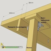 La barre délimitera le plateau une fois pliée et rendra le design plus rigide et fiable. Il est préférable de le fixer avec des vis longues ou des goupilles fendues.. Certains choisissent la méthode de montage sur les coins. Les pieds finis de la table et la base de la boucle doivent être serrés avec des vis de 3 cm.