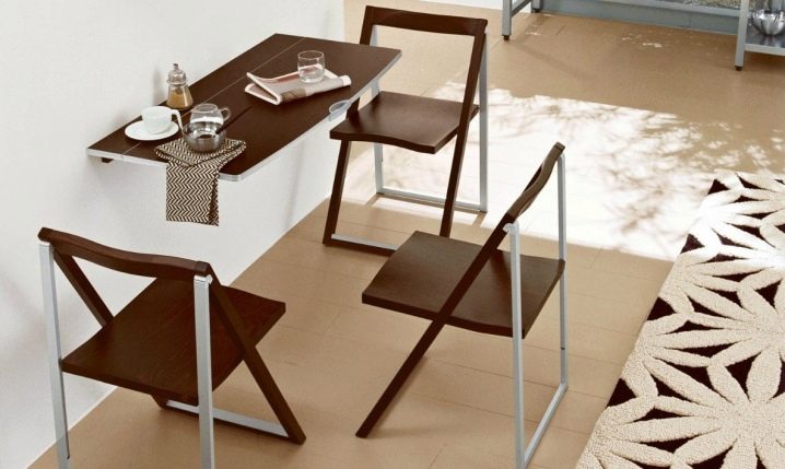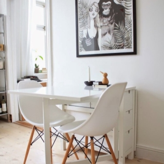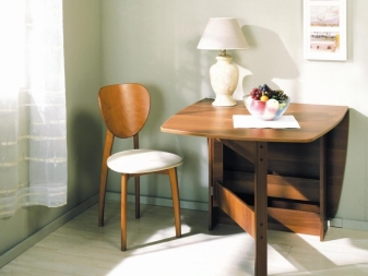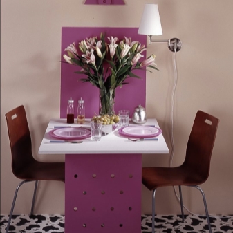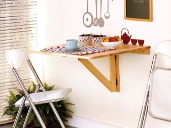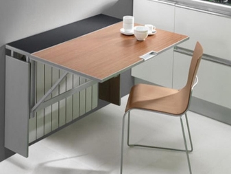 Une telle table peut également avoir un design pliant. En règle générale, ces modèles sont installés dans de très petites cuisines ou balcons.Ce modèle est un peu similaire à la transformation de produits, mais il présente une différence importante. Donc, sa conception est assez simple. La table n'a pas de fonctionnalités et capacités supplémentaires.