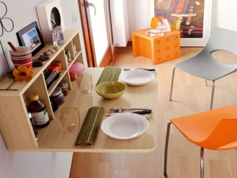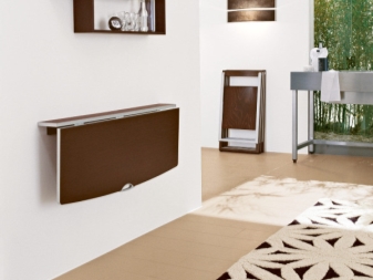 Les fabricants proposent maintenant d’autres modèles spéciaux très compacts pour un gain de place maximal. Donc, cela peut être une table pliante articulée sans pieds. Cet élément vertical peut ressembler à un seuil. La table suspendue prend peu de place et comporte généralement de petits paramètres. Vous pouvez également trouver des produits inhabituels avec des parois latérales.