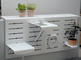 Ce meuble est un plateau universel de force spéciale, qui peut être monté sur n’importe quelle surface verticale. Cela peut être un placard, un mur ou un autre avion. Table pliante - un meuble polyvalent qui fait plus de charge. Il convient aux devoirs, à la localisation de nombreux livres et même à un dîner de famille à part entière. Le plus fiable sur une telle surface est une zone où les fixations et les boucles sont fixées.