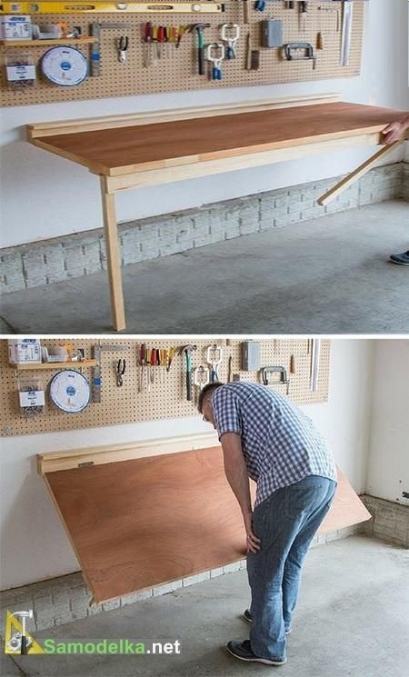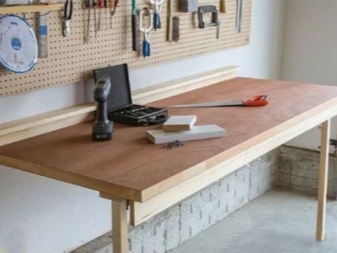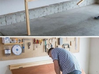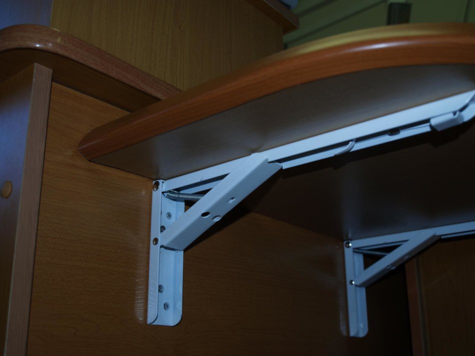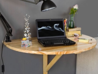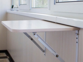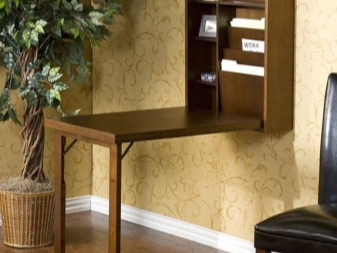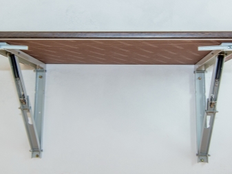 Il existe également des modèles dans lesquels le support est déjà pré-attaché au fond de la table et se déplie avec lui. D'une part, cette conception a une emphase, et d'autre part, il est monté sur des charnières. Un tel mécanisme, lors du dépliage du support, présente un évidement spécial vissé sur le dessus avec des vis. En règle générale, le support comporte des attaches murales, mais il existe également des modèles qui sont initialement fixés à la base du plateau, puis fixés au mur. Les pieds pliants sont une partie très pratique de cette conception.