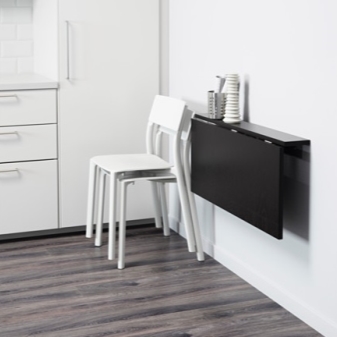 La table est fixée au mur et a généralement des pinces sous la forme de supports triangulaires ou en forme de U. La particularité de ce meuble est sa petite taille. Ainsi, il peut être mis même dans la plus petite pièce sans l'encombrer. De plus, vous pouvez choisir absolument n'importe quelle partie du mur auquel il sera attaché.