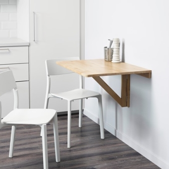 Pas moins de table populaire "Norberg". Il possède également des attaches murales, mais il est également plus fin et plus compact.Le plus petit et le plus fonctionnel est le modèle de table Bjurst. Ce produit a un plateau de table très fin et fiable, ainsi qu'un mécanisme et des fixations entièrement métalliques. Il est solidement fixé au mur et présente un design intéressant et concis.