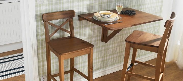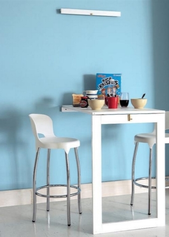 Ce modèle est le plus souvent installé dans la cuisine, dans la salle à manger ou dans des studios pour le zonage.Ceci est une excellente solution pour ceux qui ont ces chambres sont décorées dans un style moderne. C'est une table avec un design pliant qui est monté au mur. Sa caractéristique est un plateau pliant assez long et étroit. Donc, environ cinq personnes peuvent y aller.
