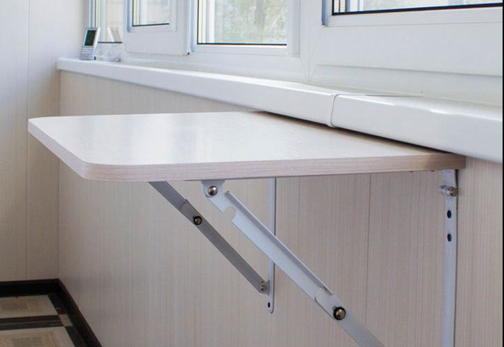 En règle générale, la table pliante est un modèle de fixation murale. Ces modèles ont un plateau, qui est monté sur les charnières. Ce dernier, à son tour, devra être fixé au mur. La table pliante peut avoir un support de jambe. Lorsque le plateau est en position horizontale, le support se déplace sur le côté et le plateau se soulève. Ainsi, vous substituez la jambe à la partie centrale du plateau et assurez sa stabilité.