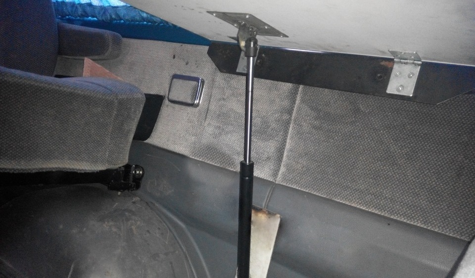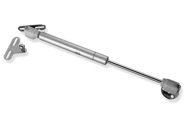 Une autre variante très intéressante du mécanisme de la table pliante est l’amortisseur à gaz. Ce produit rappelle la conception d'un mécanisme de pliage des portes arrière des voitures domestiques. Le plateau est articulé le long du mur et sous celui-ci se trouve un cylindre rempli de gaz. Cette conception est maintenue dans une position verticale avec une sangle ou des clips spéciaux.