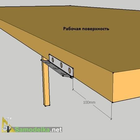 Deux supports doivent être installés un peu plus près que les bords de la construction proposée et le troisième - au milieu. Après cela, vous pouvez serrer le faisceau - montez-le avec des vis de trois centimètres. Après avoir effectué toutes ces tâches, vous pouvez accéder aux fixations. Il est important de marquer correctement l’espace nécessaire à l’installation de la future table. Il convient également de mesurer la hauteur des jambes, de sorte que la conception ne interfère pas avec son fonctionnement.