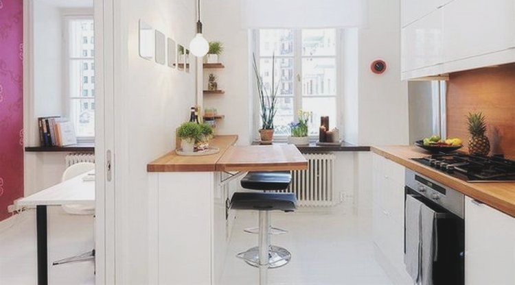 Le plus souvent, des modèles sous la forme de comptoirs sont achetés au cas où la cuisine ressemblerait à un couloir par sa taille et sa forme. C'est une excellente solution pour les appartements dont la configuration ne répond pas aux normes.