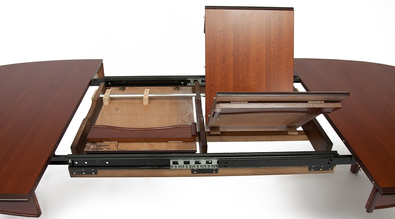 Parmi les méthodes mécaniques de transformation, il est également facile d'en trouver une qui nécessite peu d'effort.Le mécanisme le plus courant est celui dans lequel les moitiés sont écartées et laisse entre elles une partie supplémentaire, qui est initialement cachée sous le dessus de la table. Il existe également des modèles à pieds mobiles, à guides métalliques ou à insert central séparé. Ils sont stables et capables de supporter des charges lourdes.