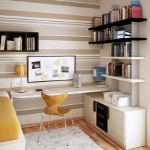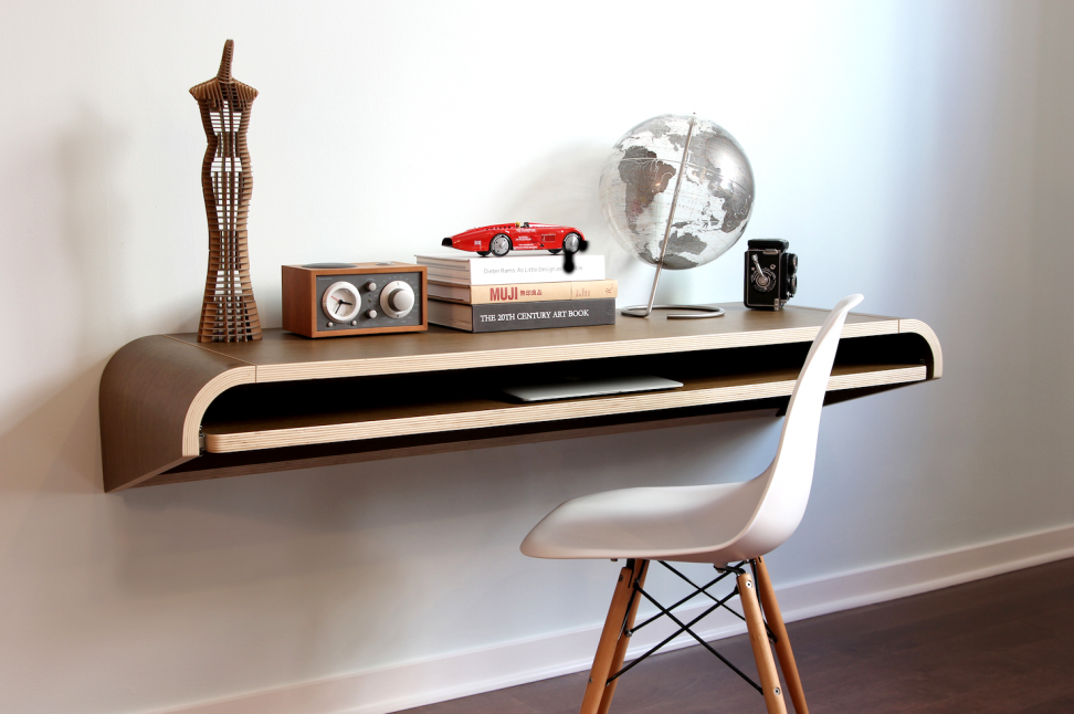 Dans le monde d'aujourd'hui, les gens préfèrent travailler à la maison. Par conséquent, le bureau apparaît de plus en plus souvent à la maison, même s'il n'y a pas d'enfants ou s'ils ont déjà grandi. Mais les concepteurs ont tendance à ne pas encombrer leurs environnements. Ici deviennent populaires tables flottantesqui sont attachés au mur.