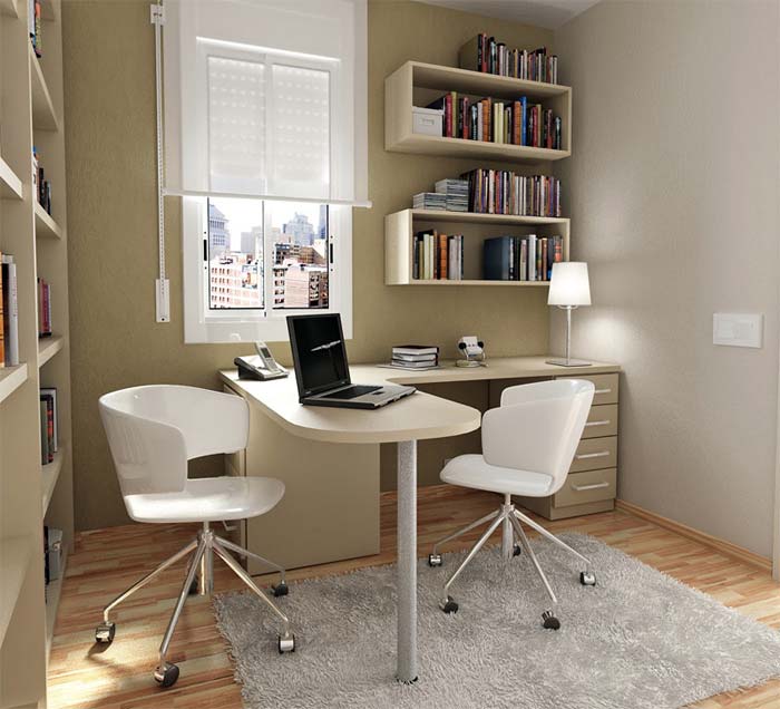 Les meubles de forme angulaire permettent de gagner de la place tout en augmentant l’espace de travail.