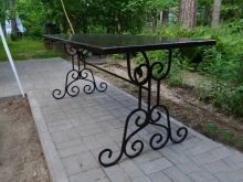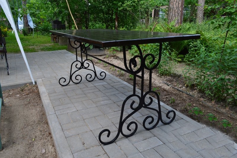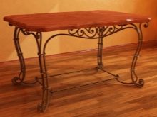 Une table avec des éléments en fer forgé sera harmonieusement située dans la salle de style provençal. Il peut être rond, ovale ou rectangulaire.Dans ce modèle, vous ne trouverez pas de tiroirs, d’extensions, de casiers. Est-ce que ce sont quelques étagères pour les journaux sous la table?