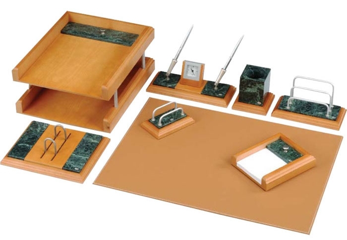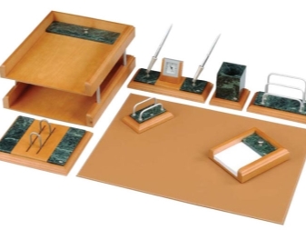 À la maison, une partie importante de la table peut être une lampe. L'avoir à gauche du travailleur. Si vous le souhaitez, vous pouvez mettre une petite montre élégante.Ils peuvent être un accessoire séparé ou entrer le jeu écrit. Parfois, un petit globe fait partie de cet ensemble.