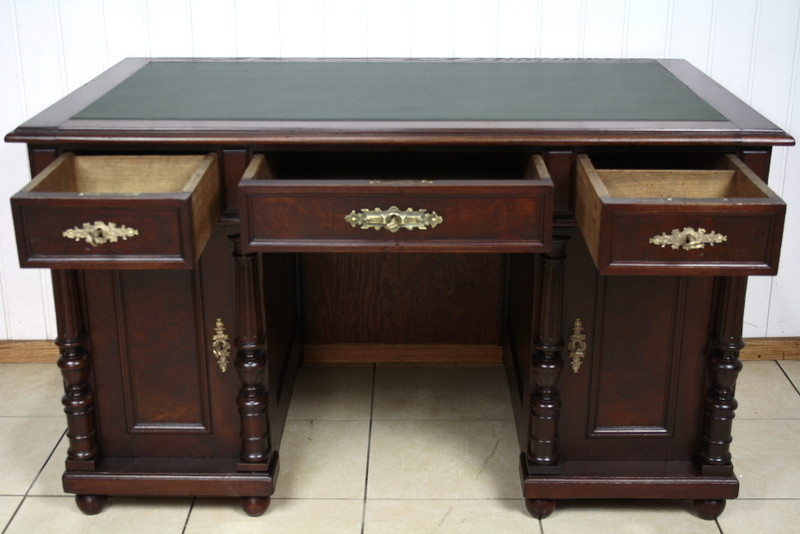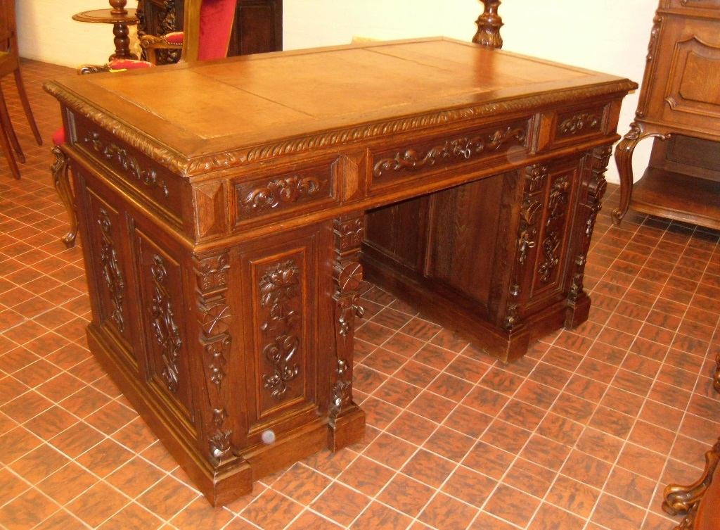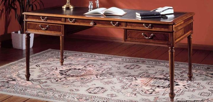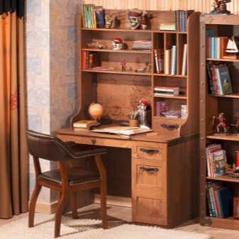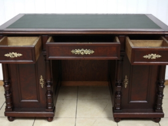 Si nous parlons d'un bureau pour un homme d'affaires adulte, vous pouvez penser à un modèle antique. À moins que, bien sûr, il réponde aux goûts du propriétaire. Cette table s'intègre parfaitement dans le bureau, faite dans le style classique: bois naturel, éléments sculptés, couleurs sobres. Regard élégant, respectable, élégant.