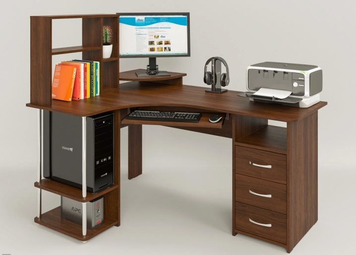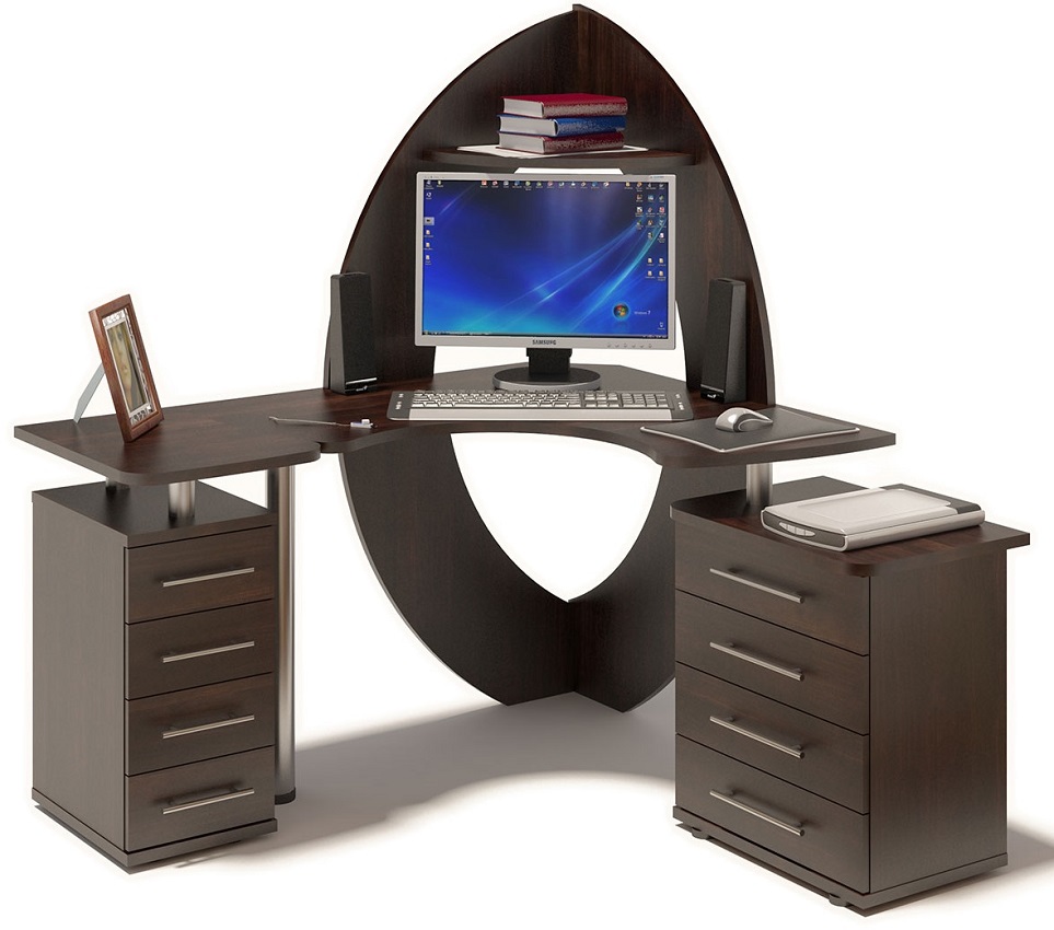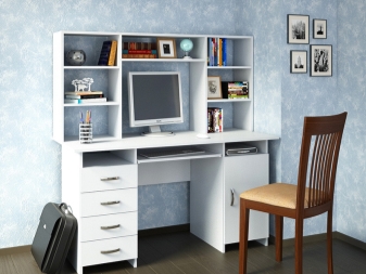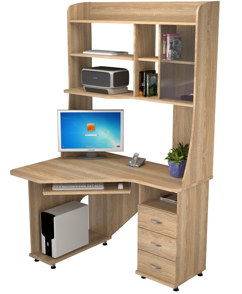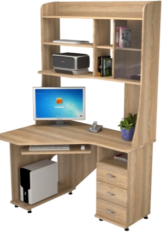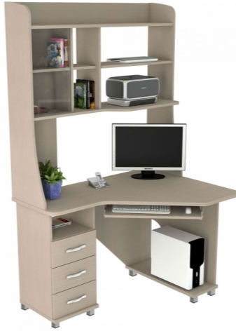 - Les plus populaires et les plus populaires sont les tables avec armoires, tiroirs et étagères. C'est un modèle universel. Il est pratique de ranger des livres, des cahiers, des chemises, diverses fournitures scolaires, des disques. Depuis que les bureaux ont longtemps été remplacés par un ordinateur, le tiroir à clavier est un élément indispensable de presque tous les ordinateurs. De plus, dans de nombreux modèles, il y a une place spéciale sous le moniteur.