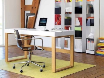 Au bureau, vous pouvez acheter une table et une forme inhabituelle qui s’intègre dans la conception générale de la pièce. Il peut s'agir de modèles modulaires de couleurs et de motifs intéressants.