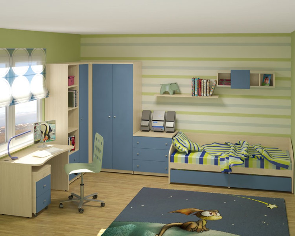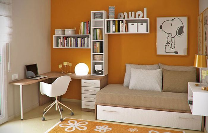 Au-dessus du mur, il est préférable de placer des étagères ou des armoires pour ranger des livres et d’autres fournitures.