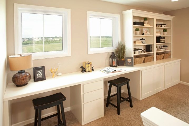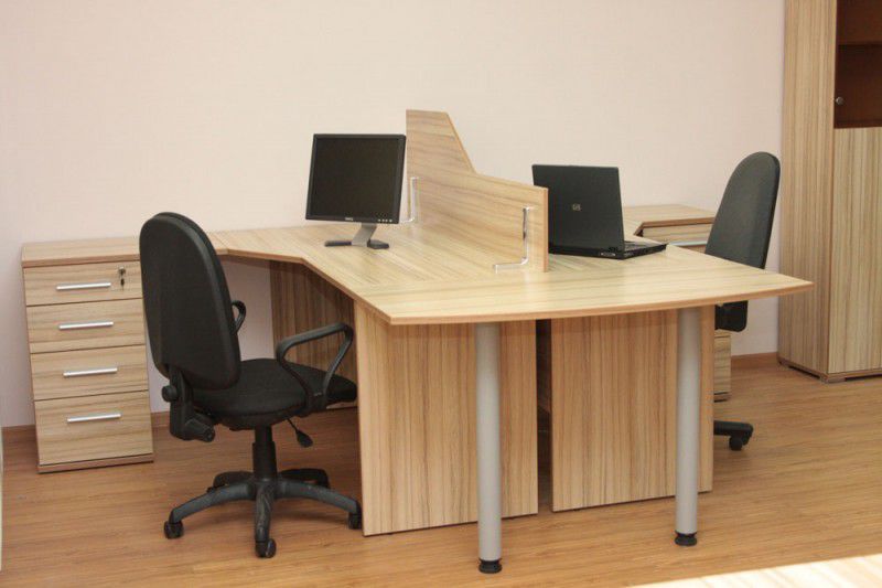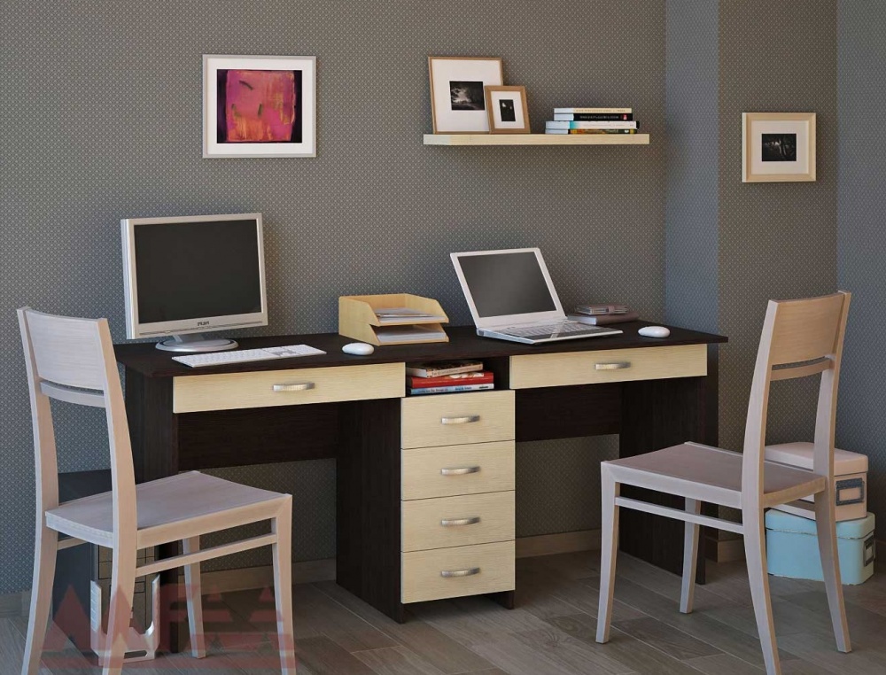 - Double Cela convient si la famille a deux enfants, chacun ayant besoin de son propre lieu de travail ou au bureau de quelques employés. La partition peut être située sur le côté de chacun ou devant. Les fabricants à cet égard offrent un choix.