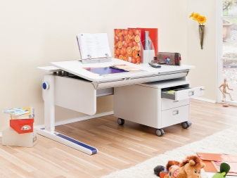 - Bureau avec piédestal - la solution idéale pour gagner de la place. À ce jour, les modèles compacts sont très pertinents, ce qui peut facilement aider à organiser un lieu de travail universel.