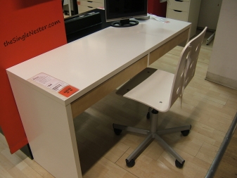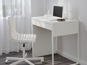 - Les petites tables sont généralement achetées pour de petites pièces dans lesquelles il est important de gagner de la place. Ils sont bon marché, rapidement assemblés, mais n’ont ni tiroirs ni étagères.