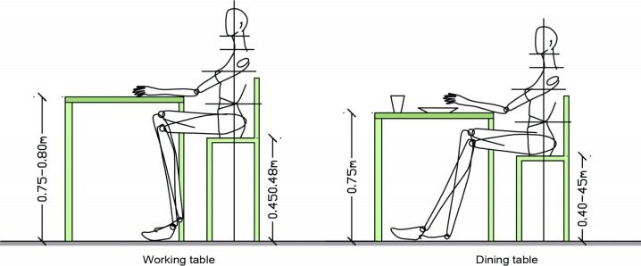 Il y a Modulor - un système selon lequel les proportions standard pour tous les meubles modernes sont détectées, y compris la hauteur des tables. Ce paramètre est très important, car c’est lui qui détermine la position d’une personne assise.Celui de la table basse se penche en avant et celui qui est assis derrière la table haute doit lever la tête, ce qui est naturellement erroné.